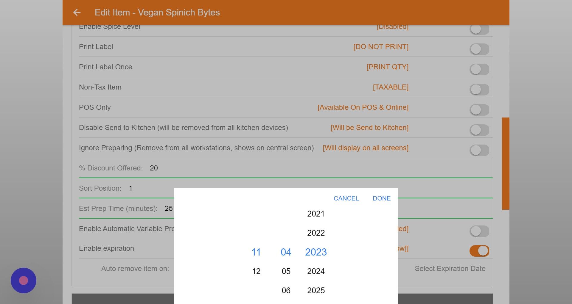 19. Click the “Estimated Prep Time (mins)” field and change to a different amount #