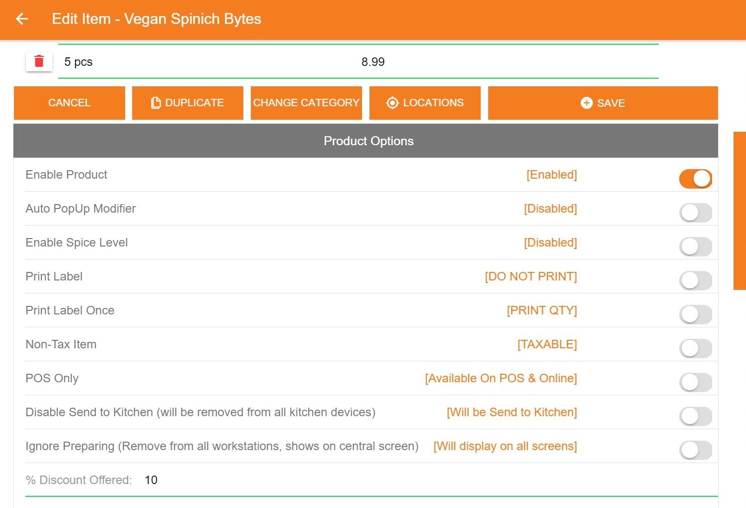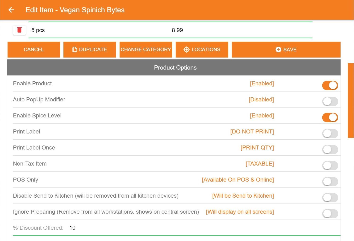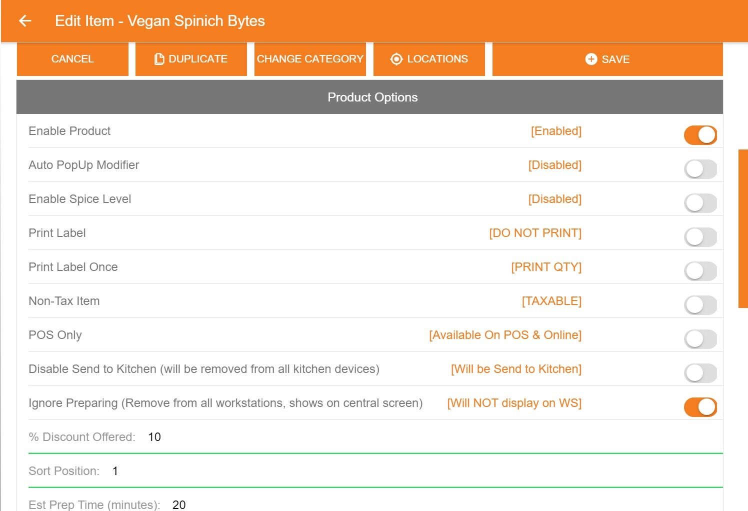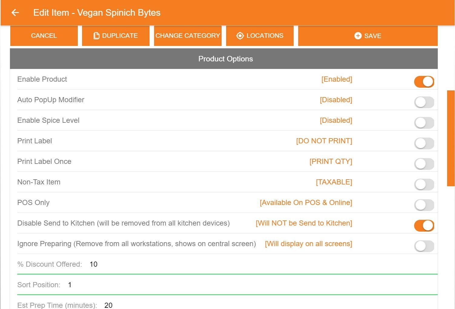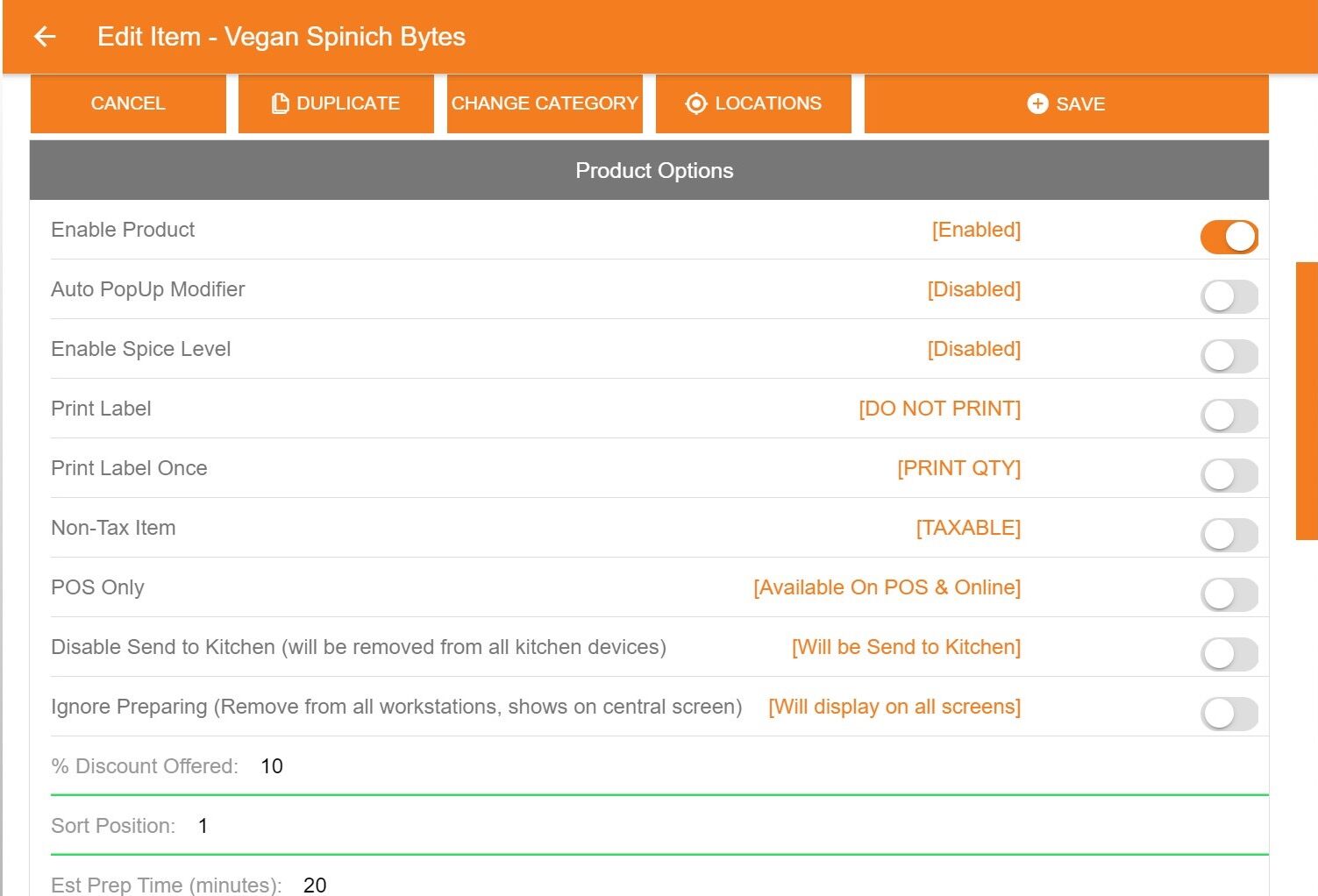 guide provides step-by-step on how to navigate and utilize various product options. It covers a range of such as enabling/disabling modifiers, spice levels, labels, tax exemptions, POS, kitchen preparation settings, discounts, prep time, expiration dates, and more. By following this guide, users can efficiently customize and manage their product options to enhance their restaurant operations.