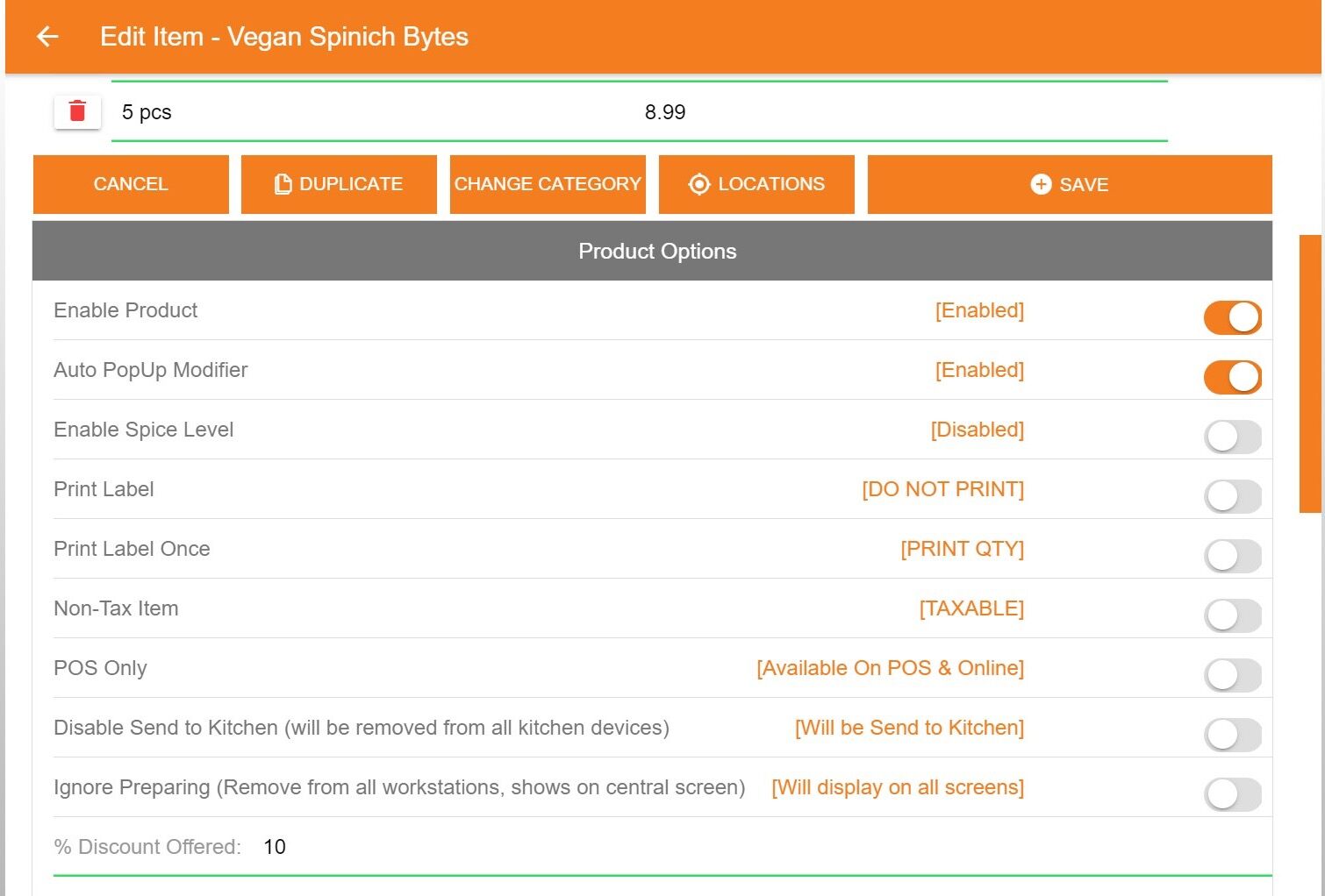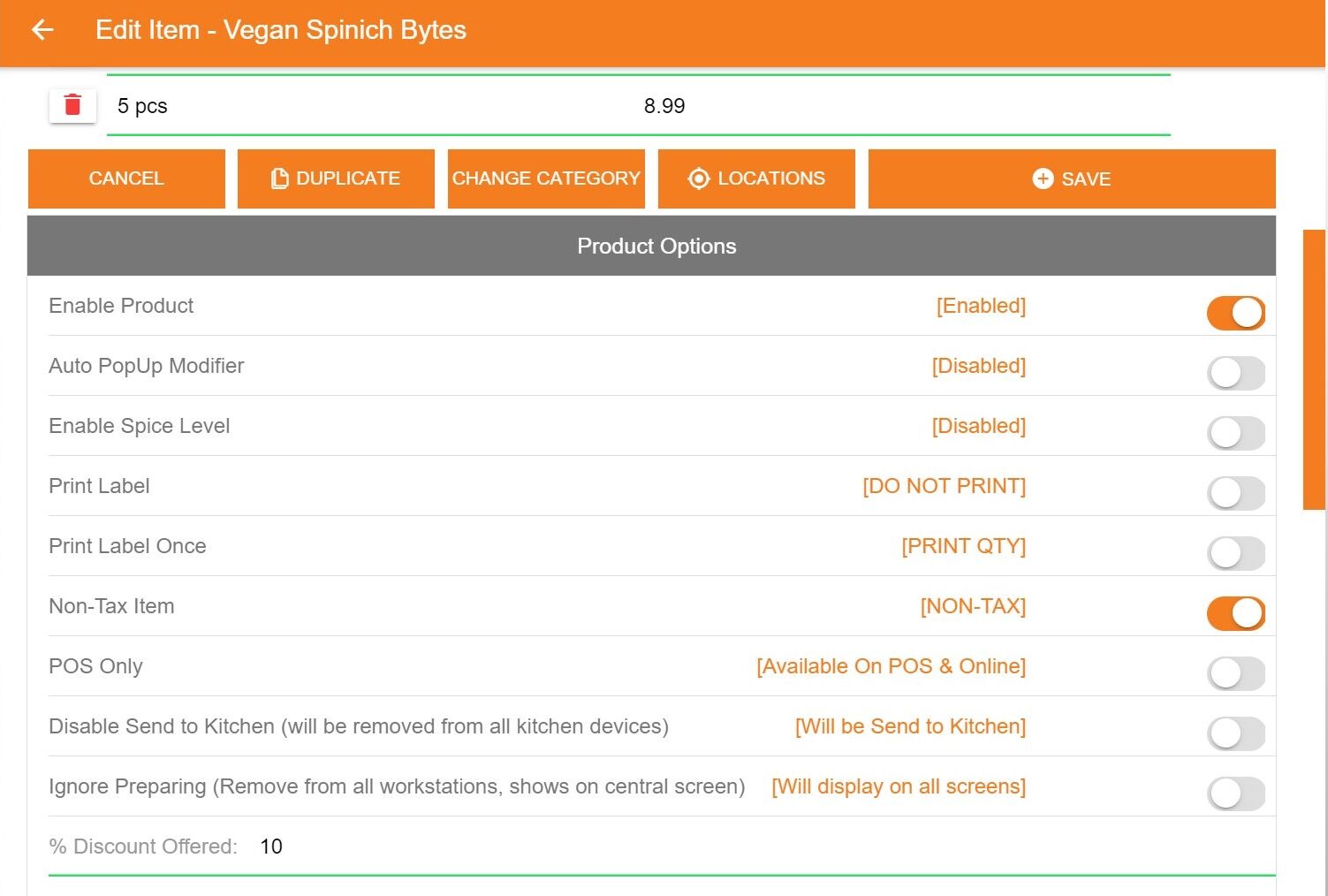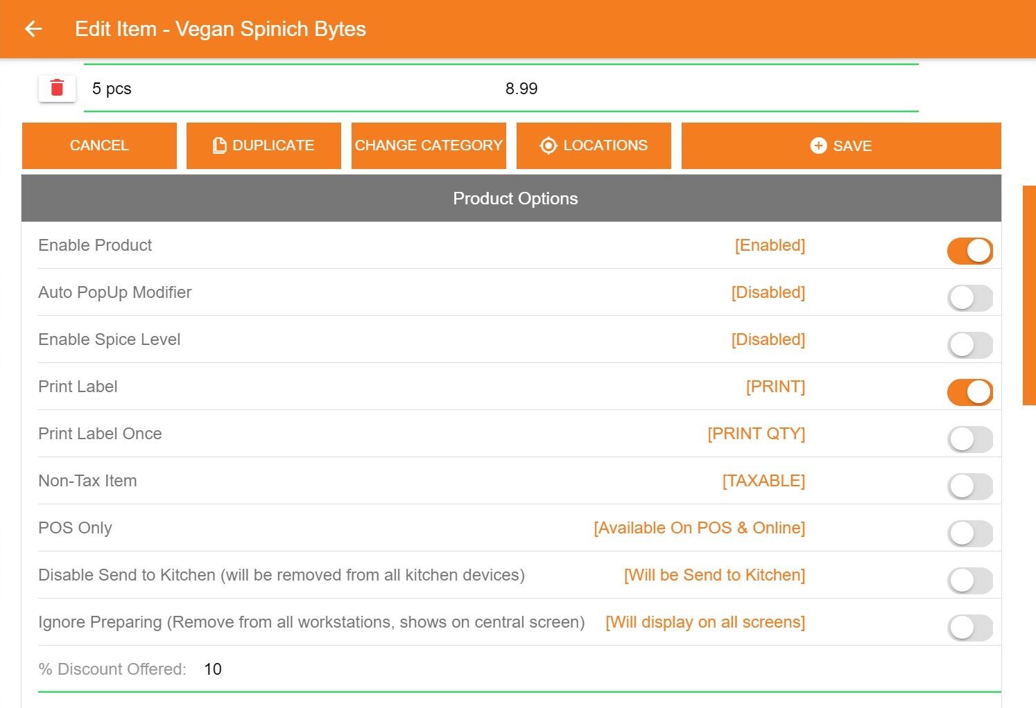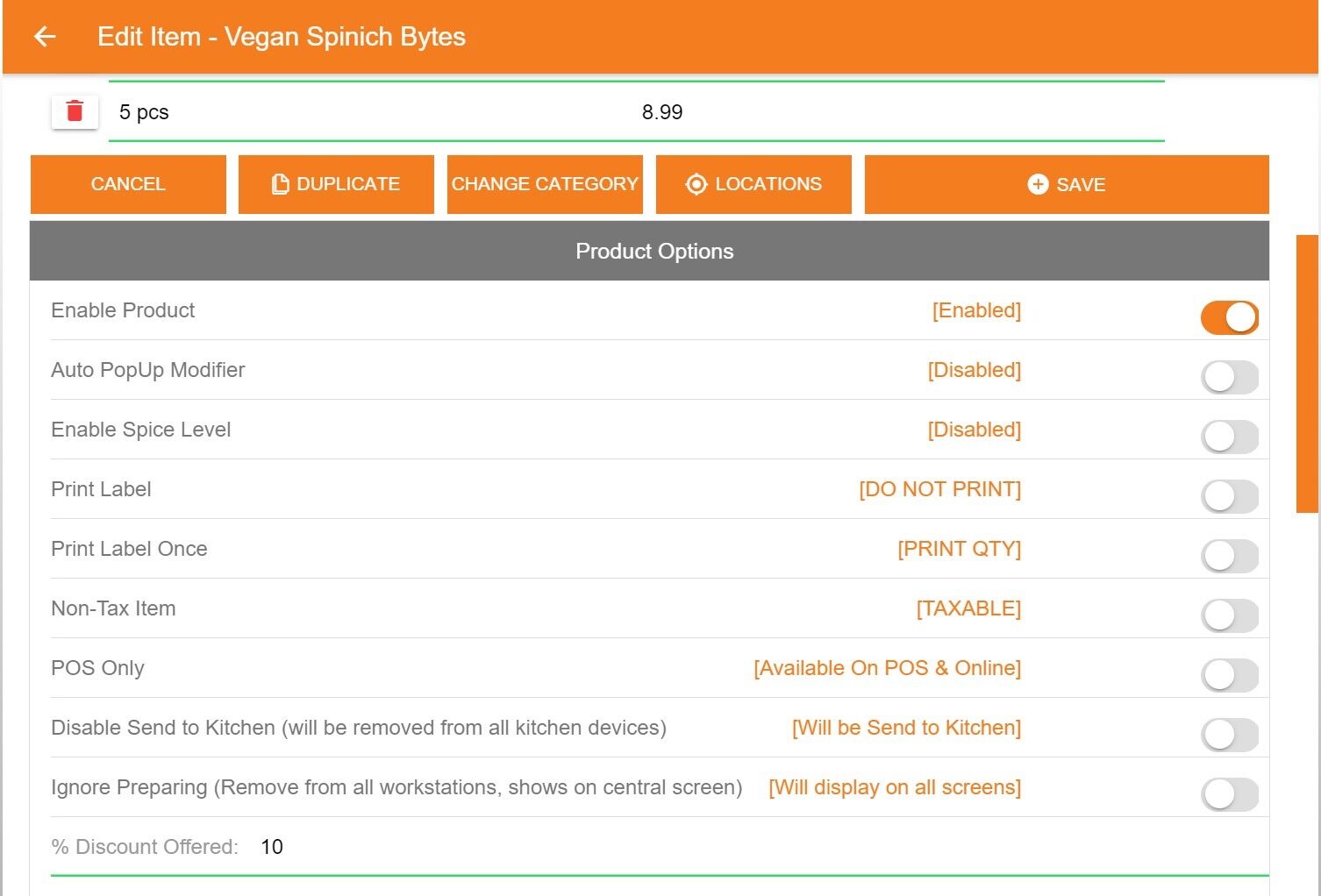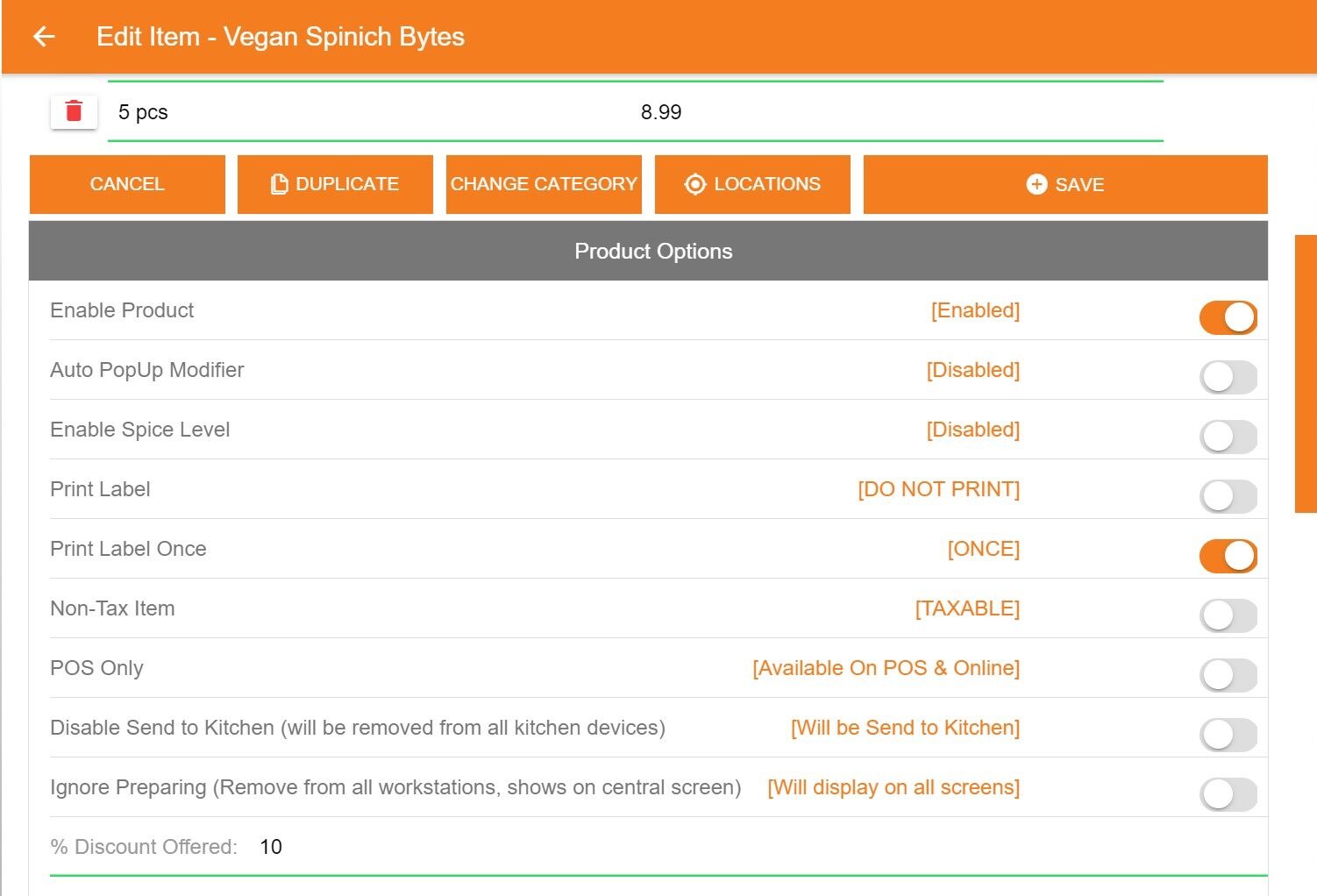 guide provides step-by-step on how to navigate and utilize various product options. It covers a range of such as enabling/disabling modifiers, spice levels, labels, tax exemptions, POS, kitchen preparation settings, discounts, prep time, expiration dates, and more. By following this guide, users can efficiently customize and manage their product options to enhance their restaurant operations.