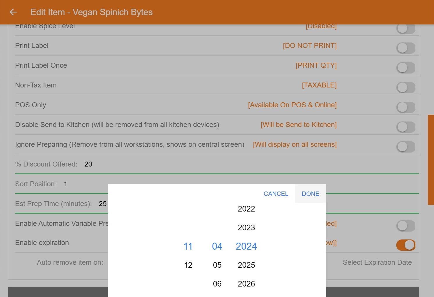 25. Then click on DONE. Item will be removed from the category on the selected date. #