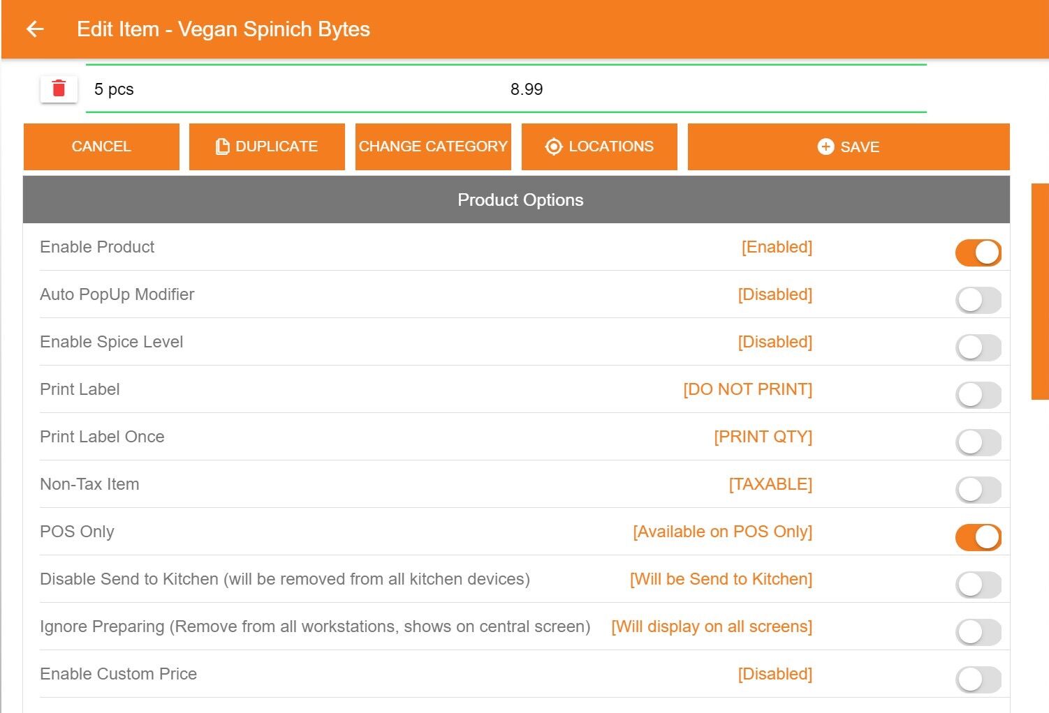 12. Click here to enable POS only to show item in the POS in the restaurant #