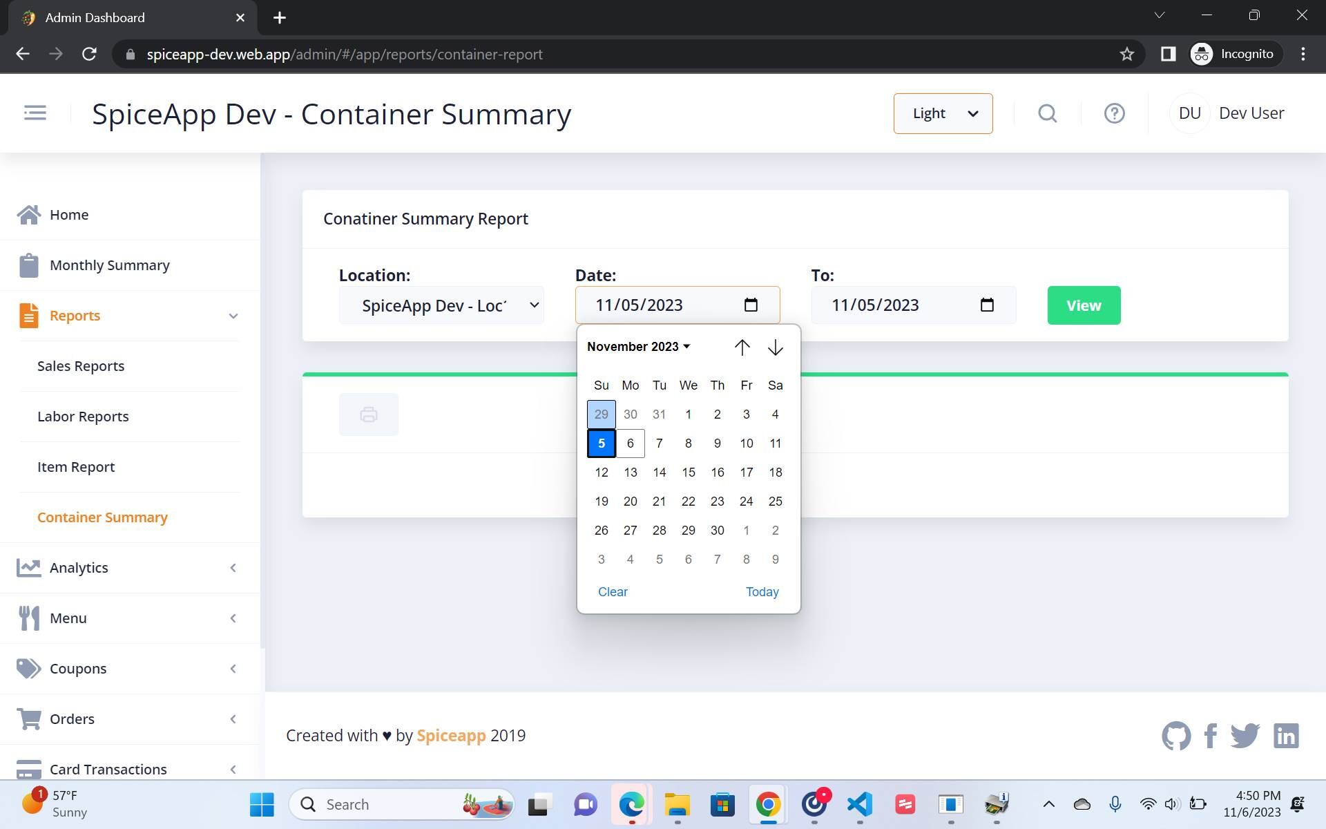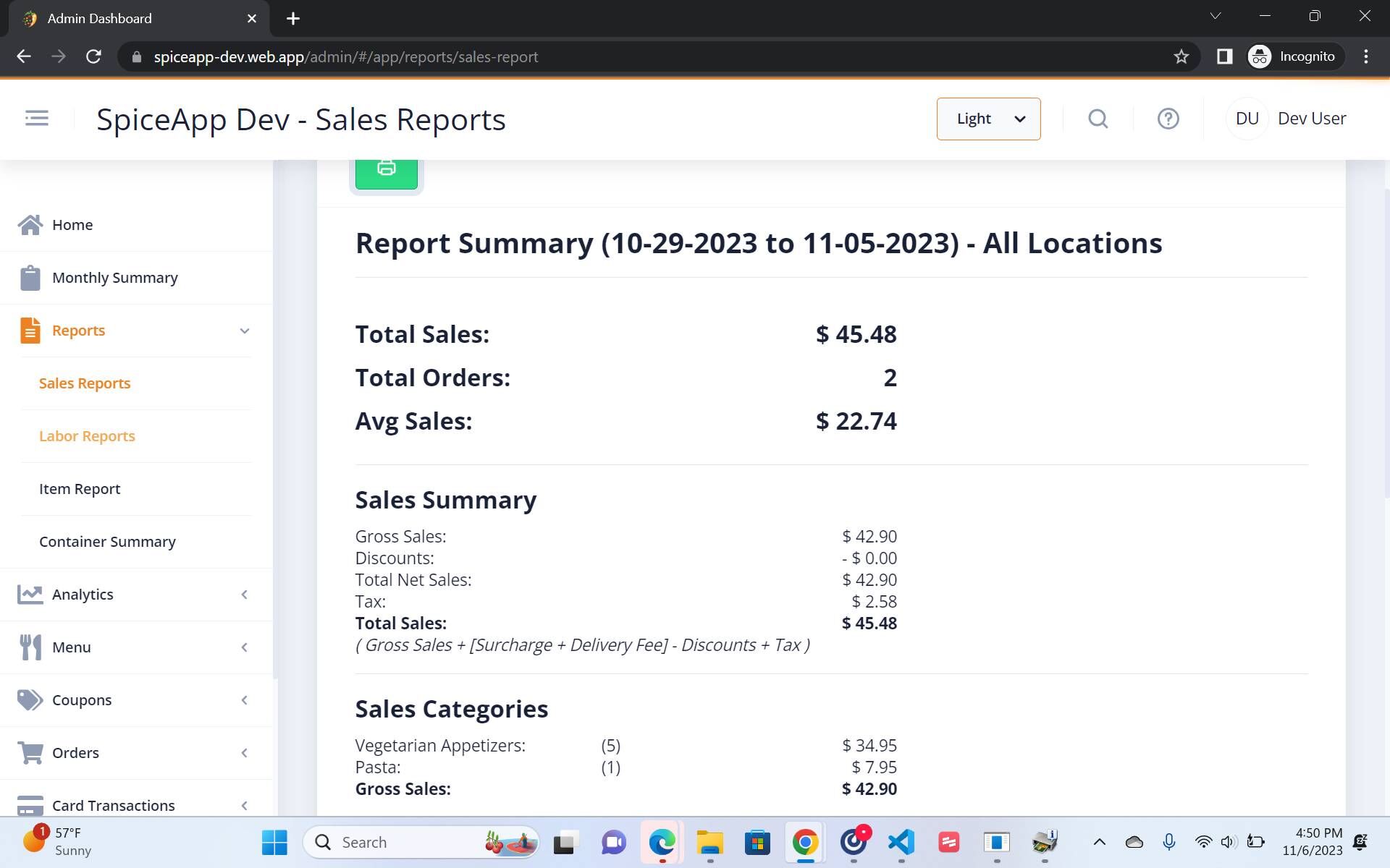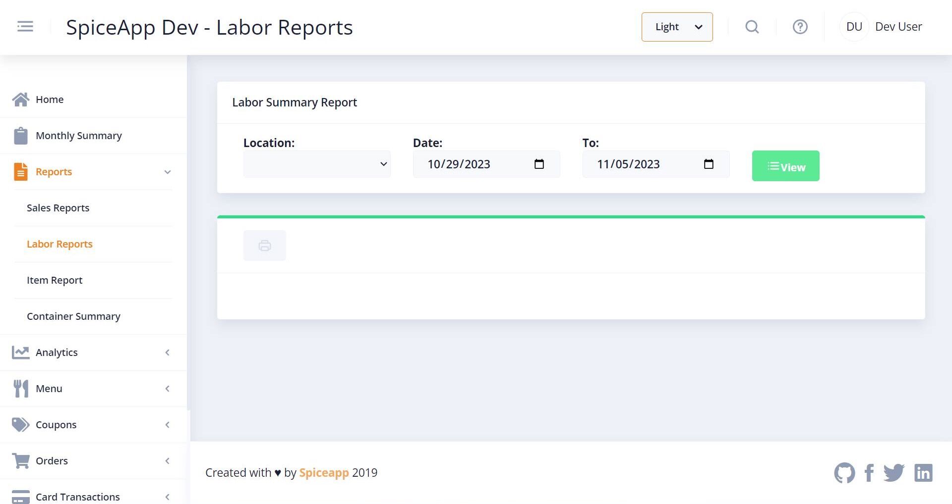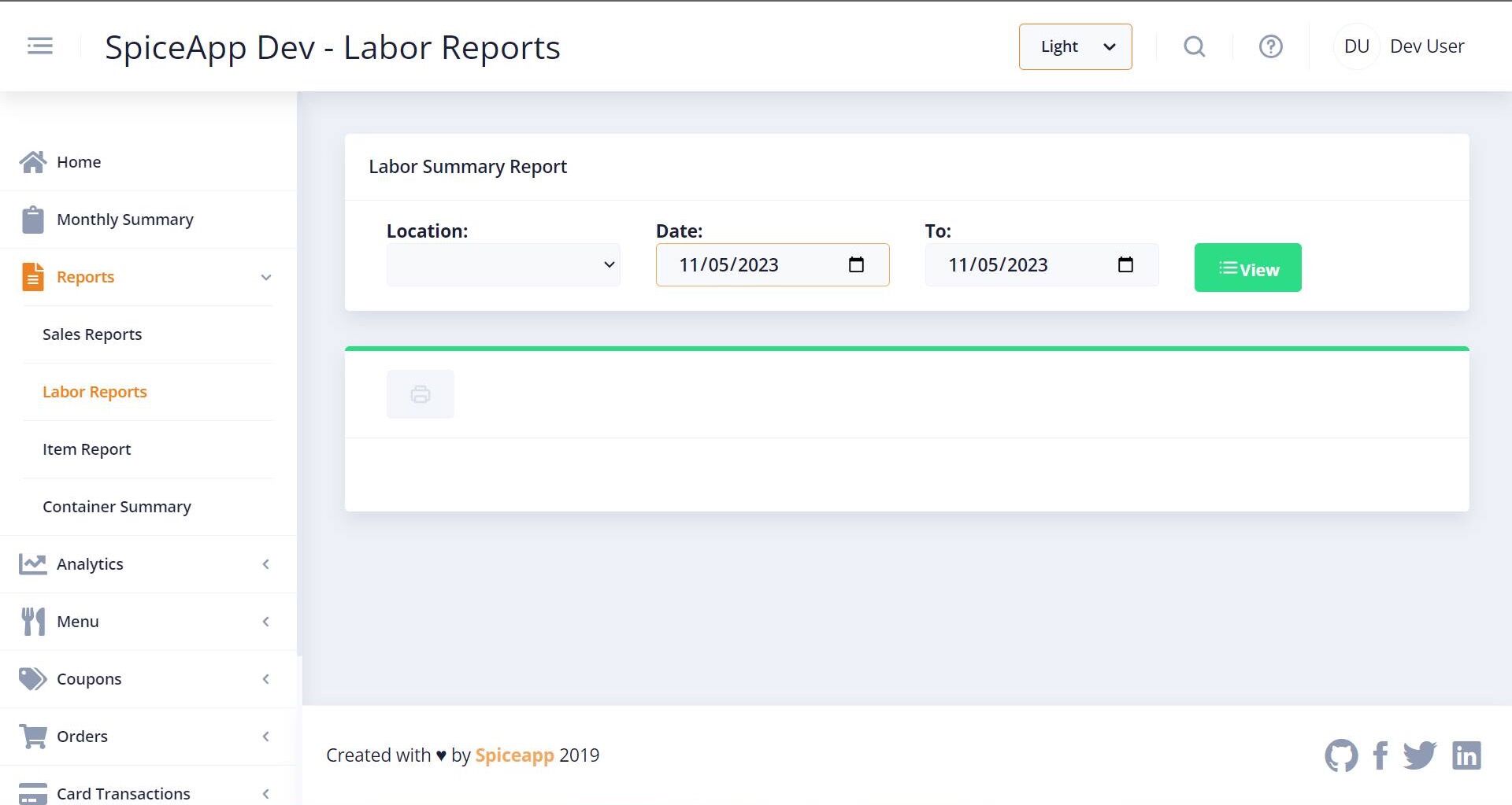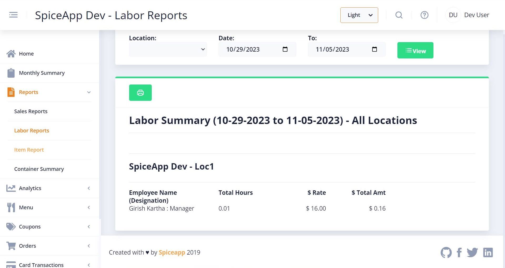 Clicking the “Labor Reports” tab will display a filter. Where you can get your sales reports from a date range.