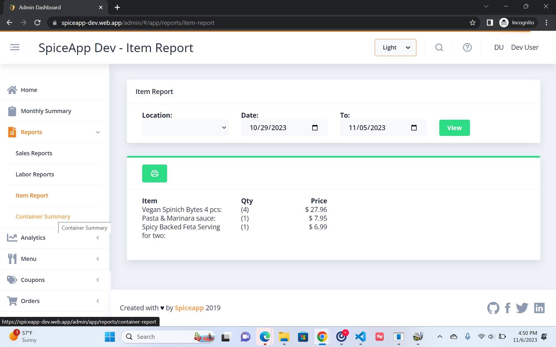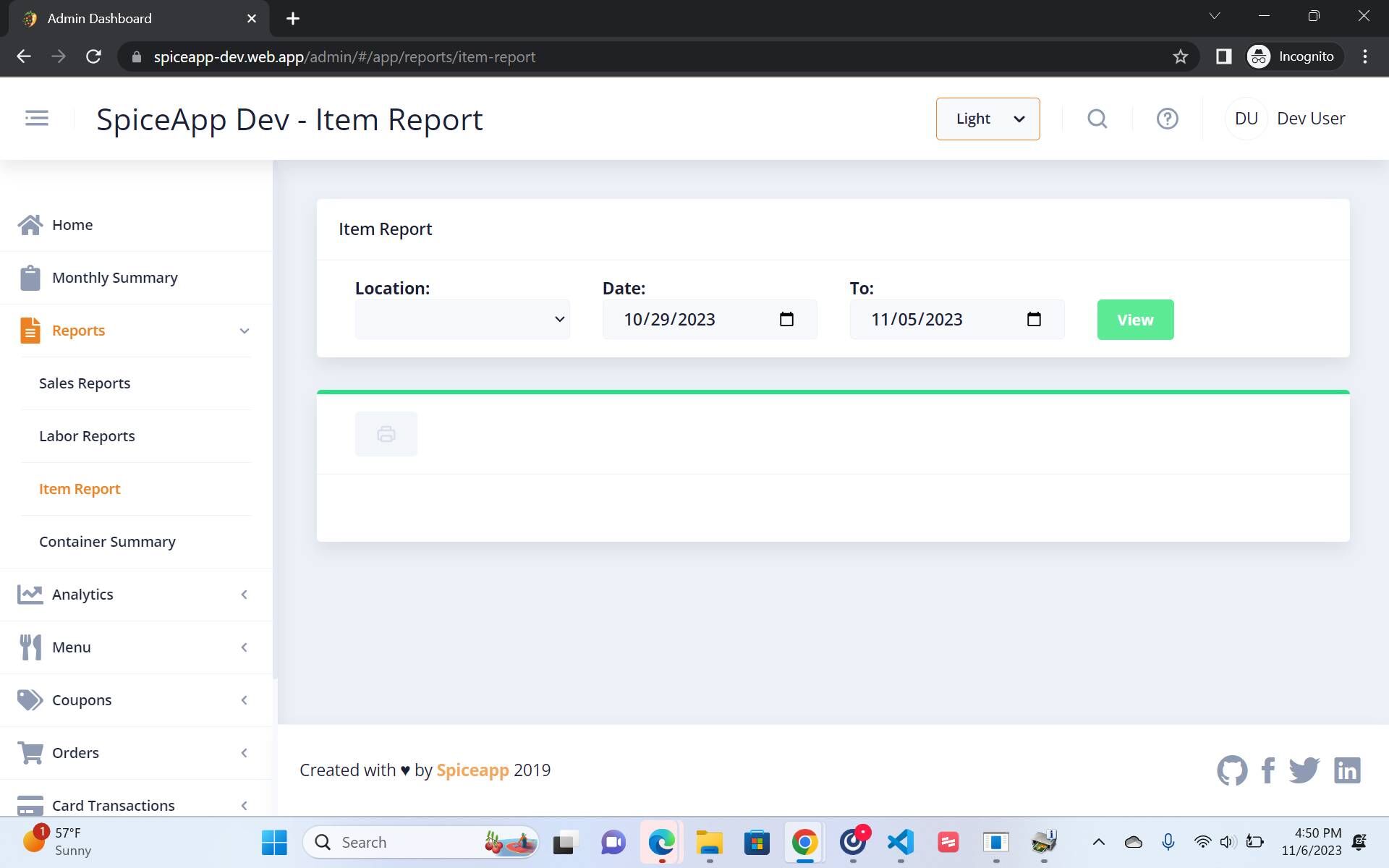 Clicking the “Item Reports” tab will display a filter. Where you can get your sales reports from a date range.