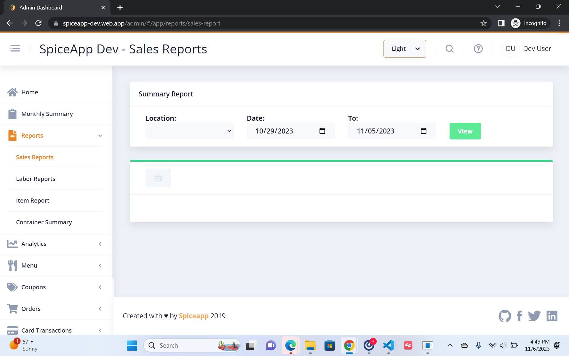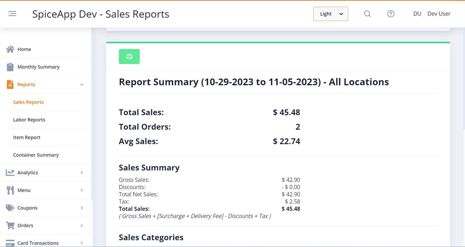 Clicking the “Sales Reports” tab will display a filter. Where you can get your sales reports from a date range.